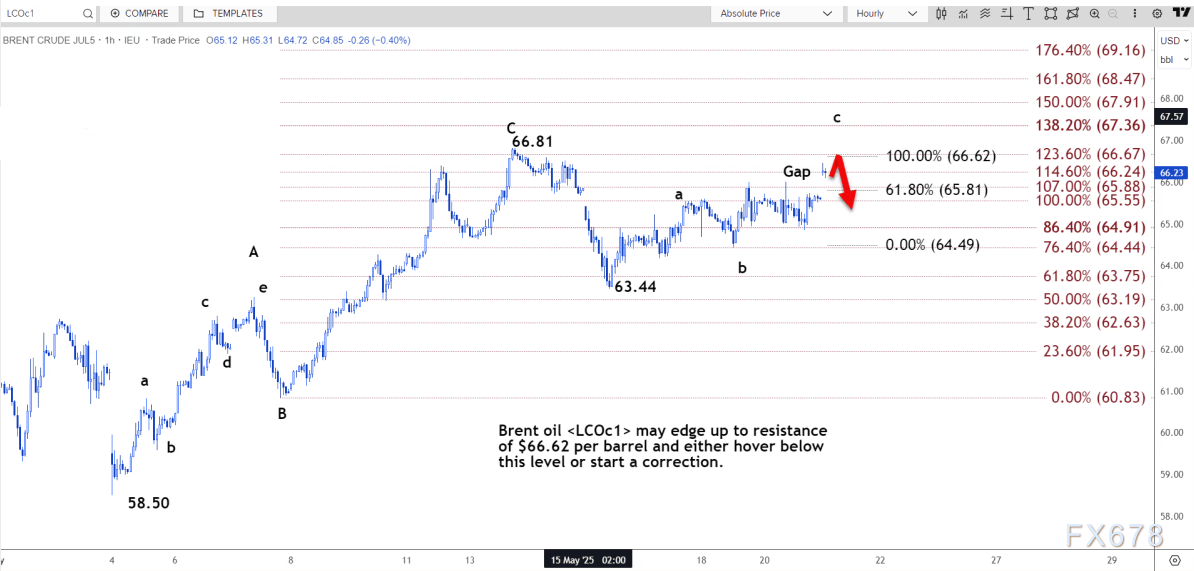 路透技术分析师指出,布伦特原油可能上涨至每桶 66.62 美元的阻力位,然后徘徊在此水平下方或开始回调。